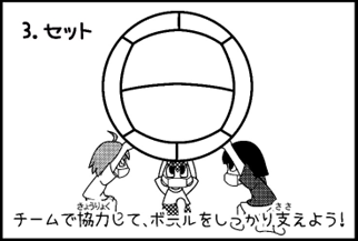 コンペティションゲームの攻撃のヒット時はチーム全員がボールに触れていなければなりません。さらにヒットは同じ人が2度続けて打つことはできません。守備のときも飛んでくるボールを1人では取れなくても4人で協力すれば取ることができます。よって攻守とも全員が参加できる画期的なボールゲームです。(一般社団法人キンボールスポーツ連盟から抜粋)